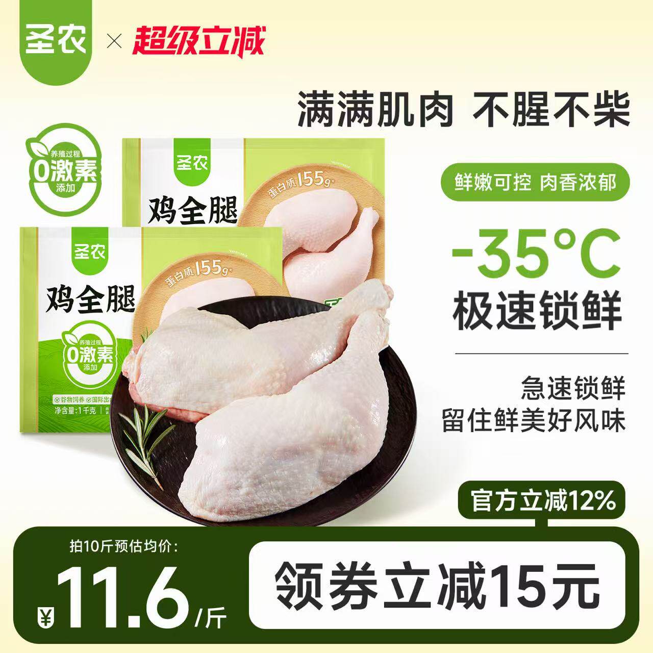 圣农鸡全腿手枪腿新鲜饱满养殖0激素冷冻半成品烧烤生鲜鸡肉批发