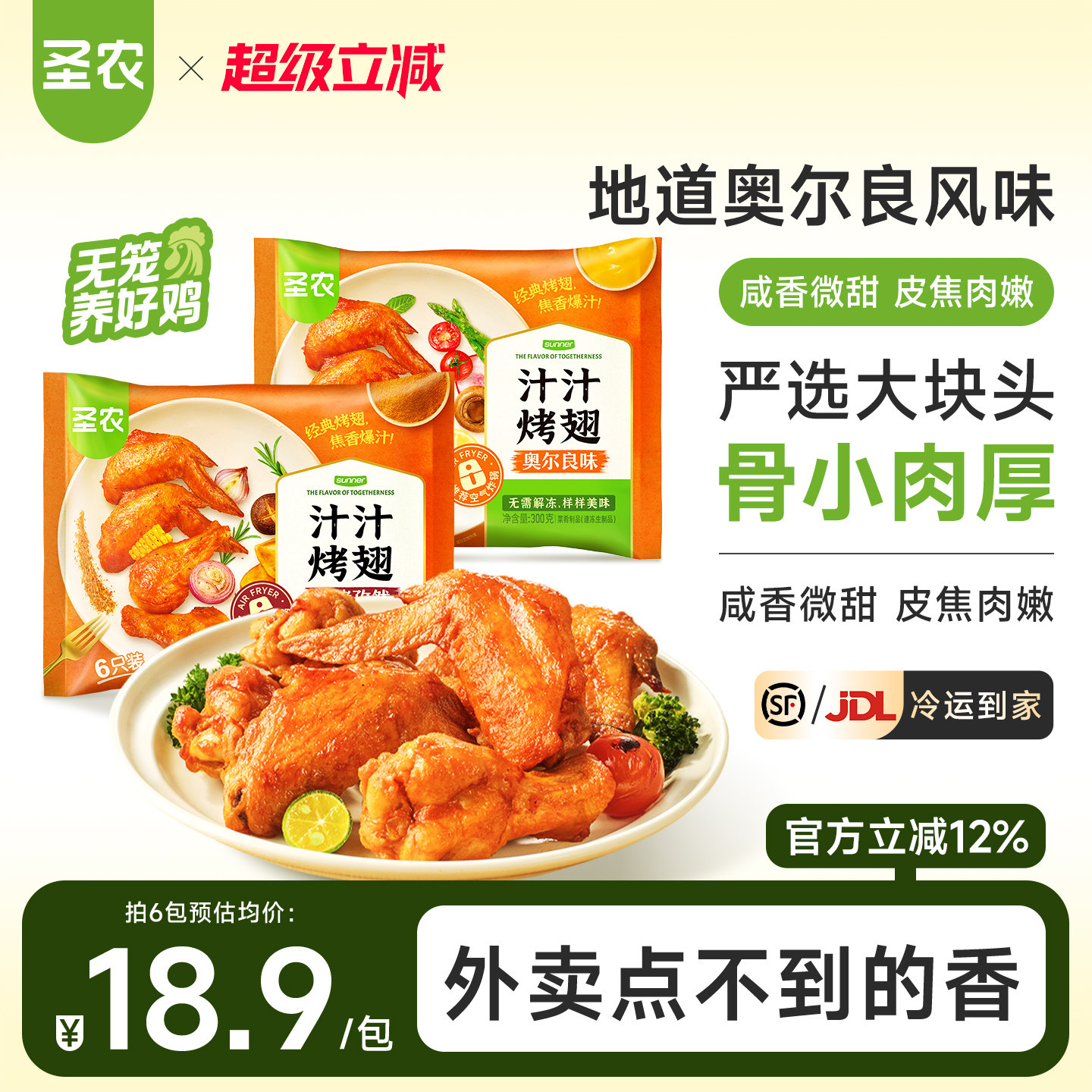 圣农汁汁烤翅300g奥尔良孜然味空气炸锅半成品冷冻鸡翅聚餐美食
