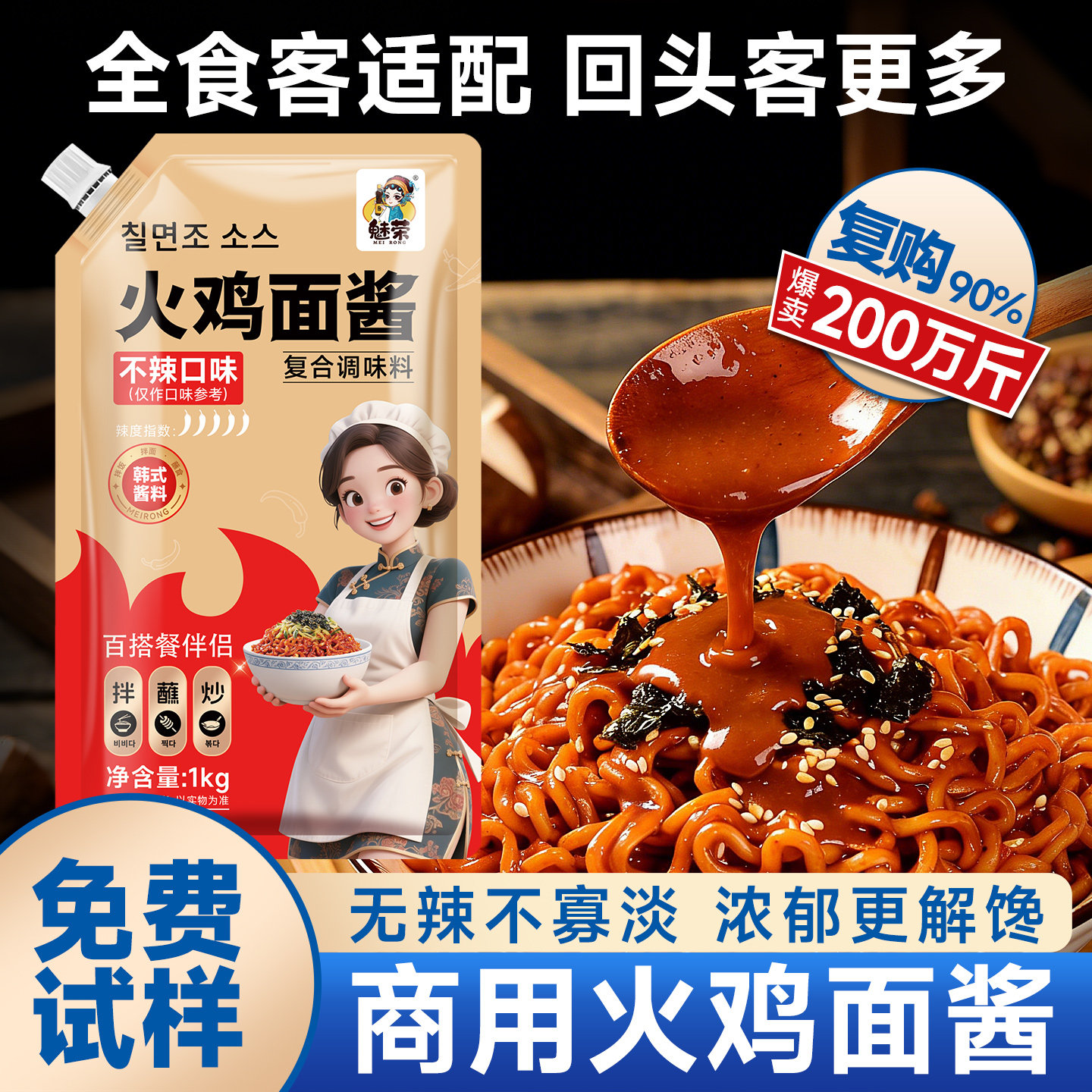 魅荣商用不辣火鸡面酱下饭拌面拌饭炒年糕火锅开店用甜辣火鸡面酱