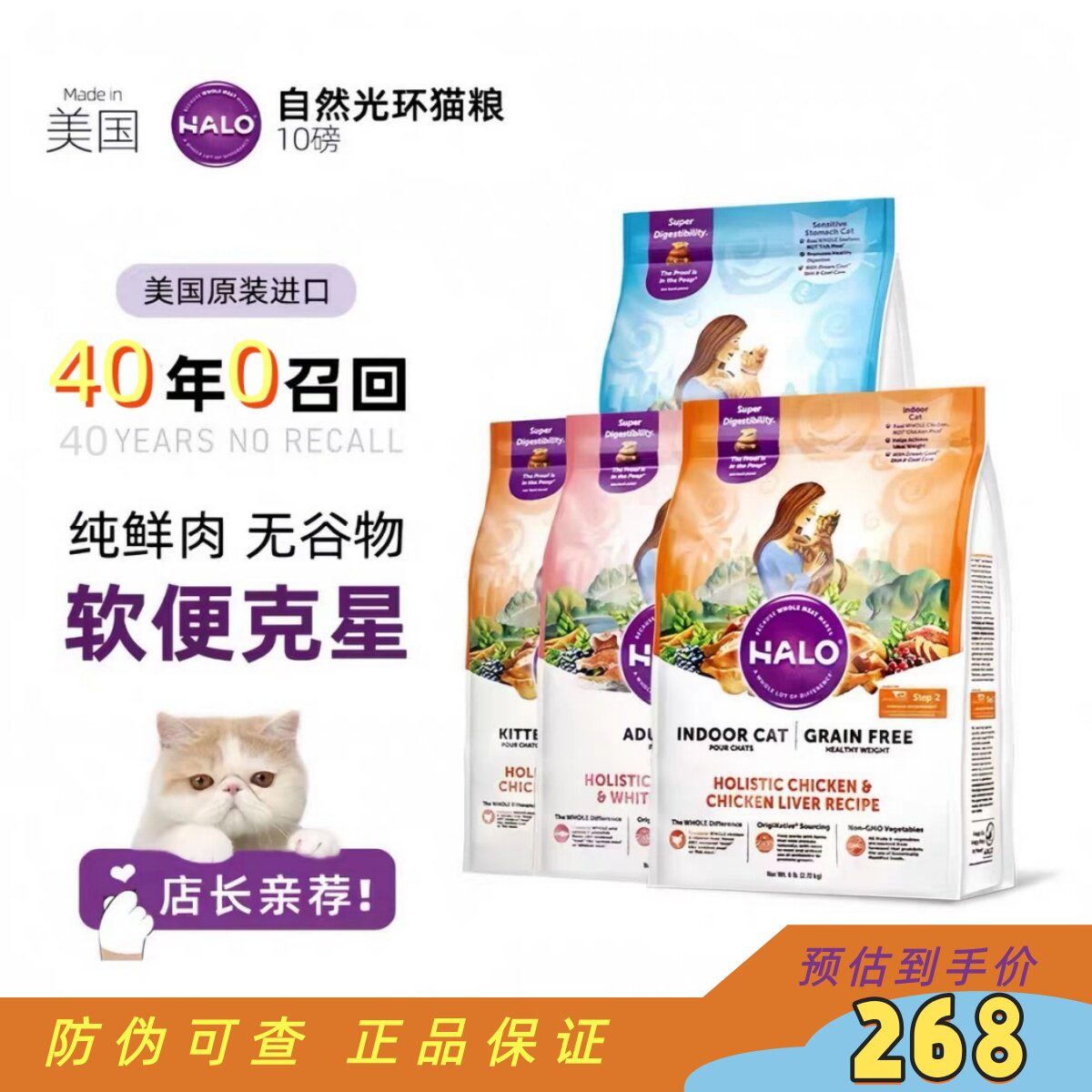HALO自然光环猫粮美国进口软便健美体态鸡肉10磅成猫粮