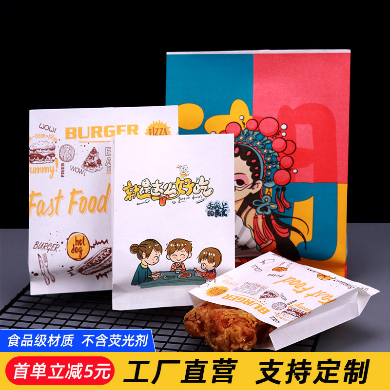 国潮小吃鸡排防油纸袋一次性炸鸡鸡腿鸡翅薯条外卖打包食品袋定制