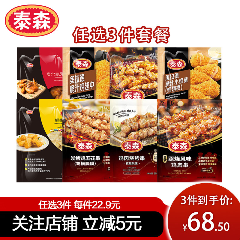 【任选3件】泰森炸鸡黑胡椒鸡块鸡肉串盐酥鸡空气炸锅半成品商用