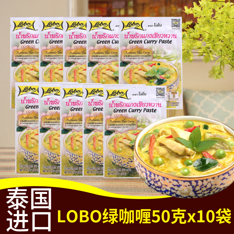 lobo乐煲泰国进口调料绿咖喱酱青咖喱 鸡鱼丸 咖喱饭50克X10微辣