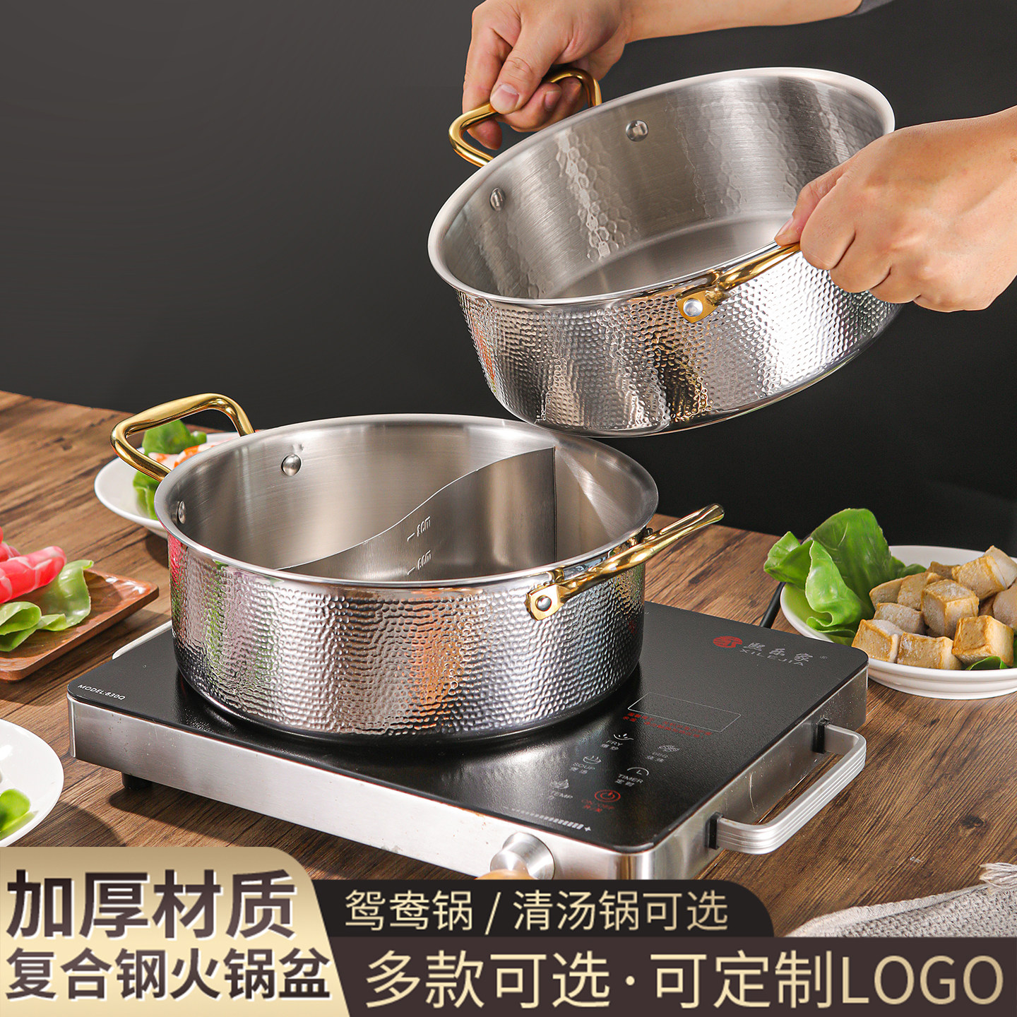 三层钢锤纹汤锅商用大容量鸳鸯锅燃气电磁炉通用椰子鸡海鲜火锅盆