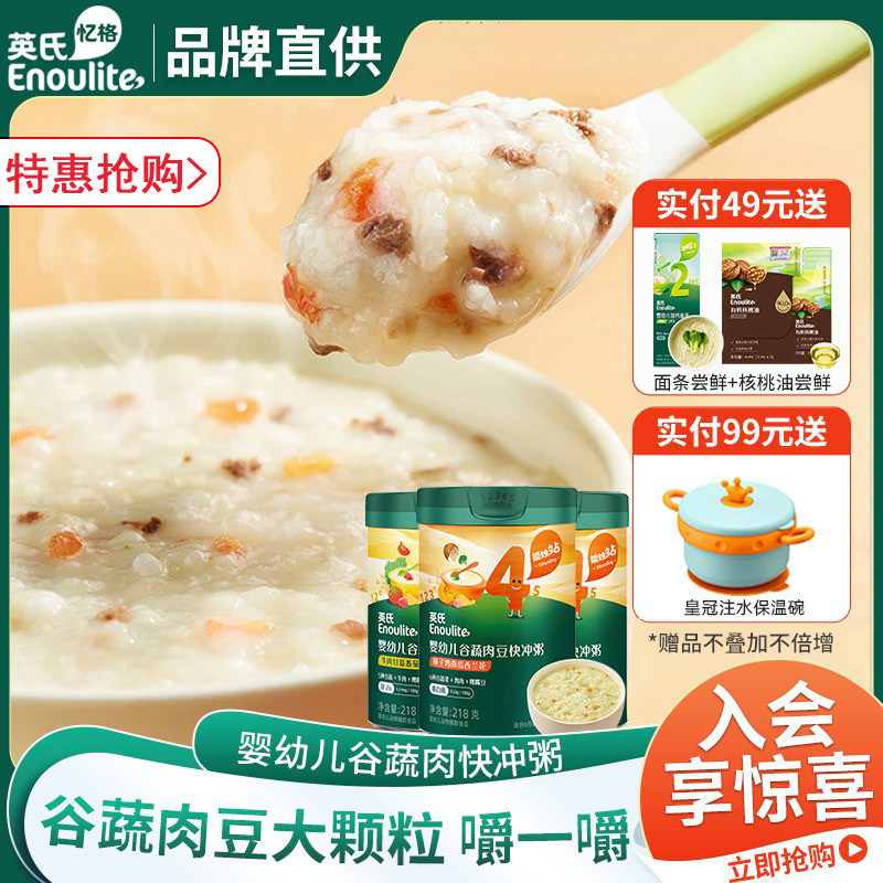英氏快冲粥谷蔬肉豆米粥椰子鸡南瓜胡萝卜虾玉米宝宝辅食官方正品