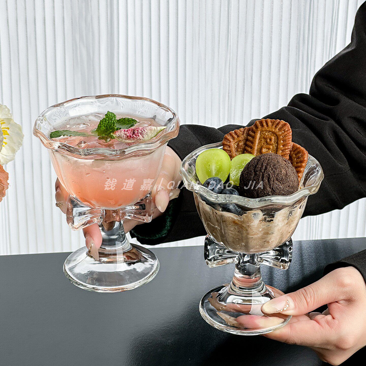 ins网红创意蝴蝶结高脚玻璃杯鸡尾酒杯女生果汁杯布丁冰淇淋杯