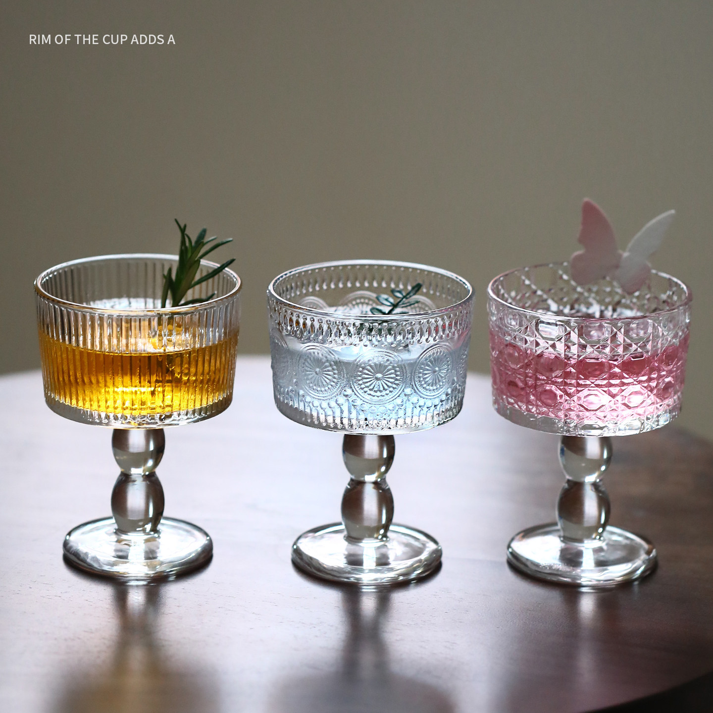 创意高脚杯鸡尾酒杯香槟杯复古刻花玻璃杯冰淇淋杯葡萄酒杯红酒杯