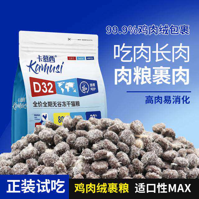卡慕西雪花鸡肉绒无谷冻干猫粮长肉高蛋白成猫幼猫营养猫主粮