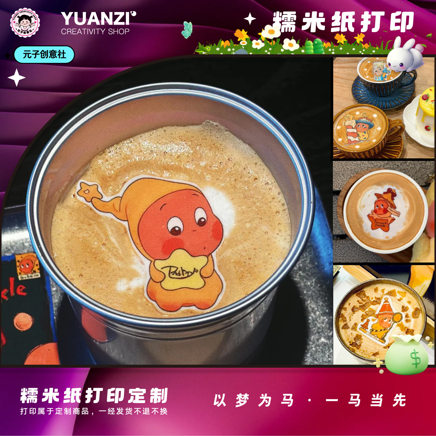 星星人咖啡拉花糯米纸打印定制拉花星人奶茶鸡尾酒饮品装饰糖霜纸
