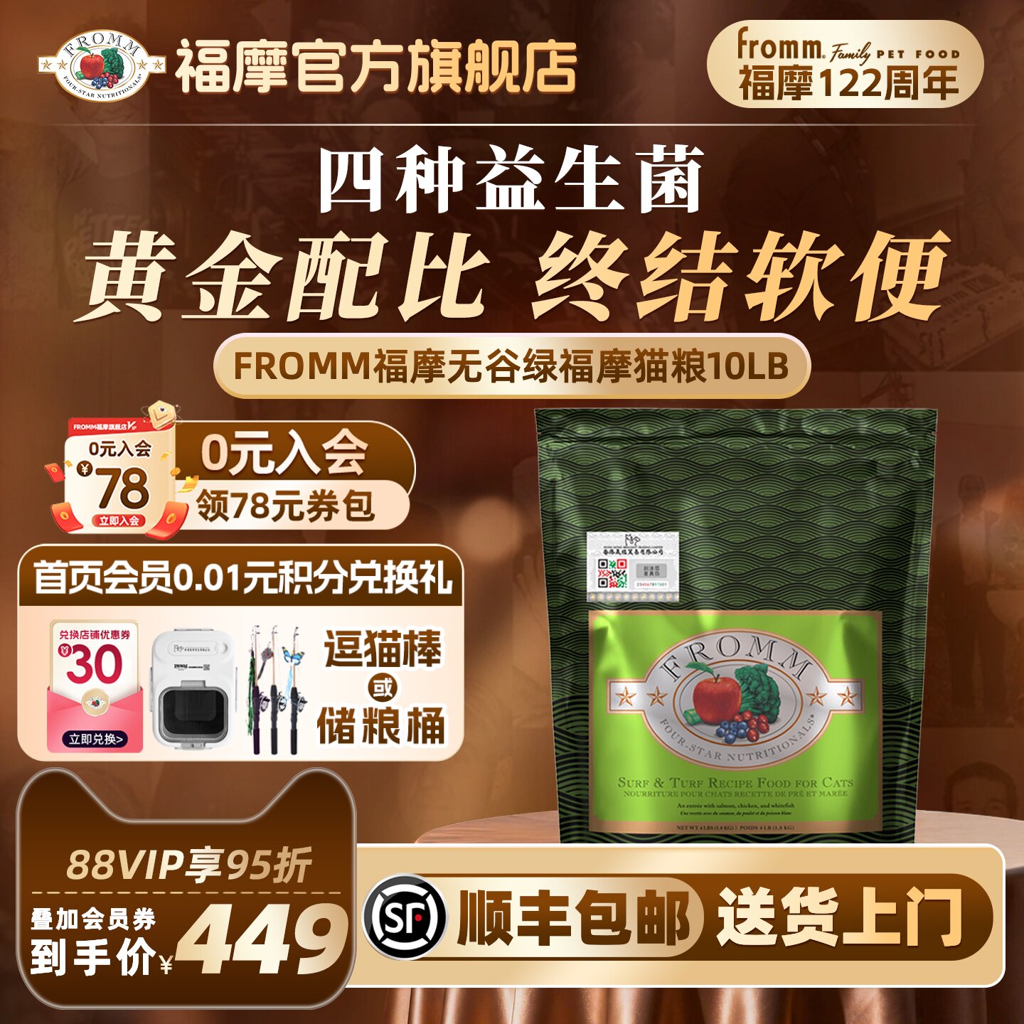 【官方旗舰店】无谷Fromm绿福摩三文鱼鸡肉鸭肉蔬果成幼猫粮10LB