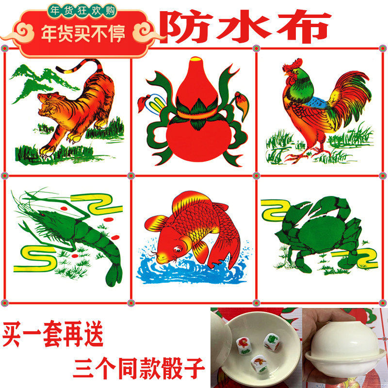 鱼虾蟹色子赌具老虎葫芦鸡骰子广告防水布陶瓷碗摇盅套装1.6筛子