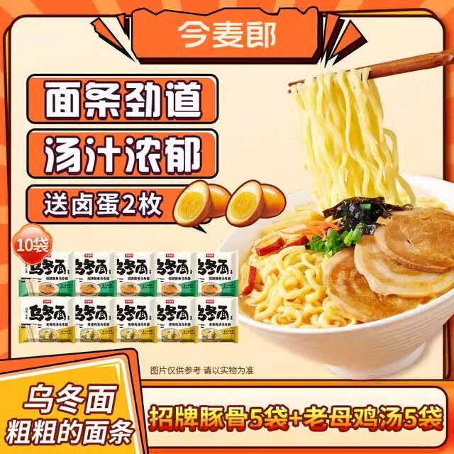 【粗粗的面】今麦郎乌冬面美味鲜香招牌豚骨+老母鸡汤10袋装夜宵
