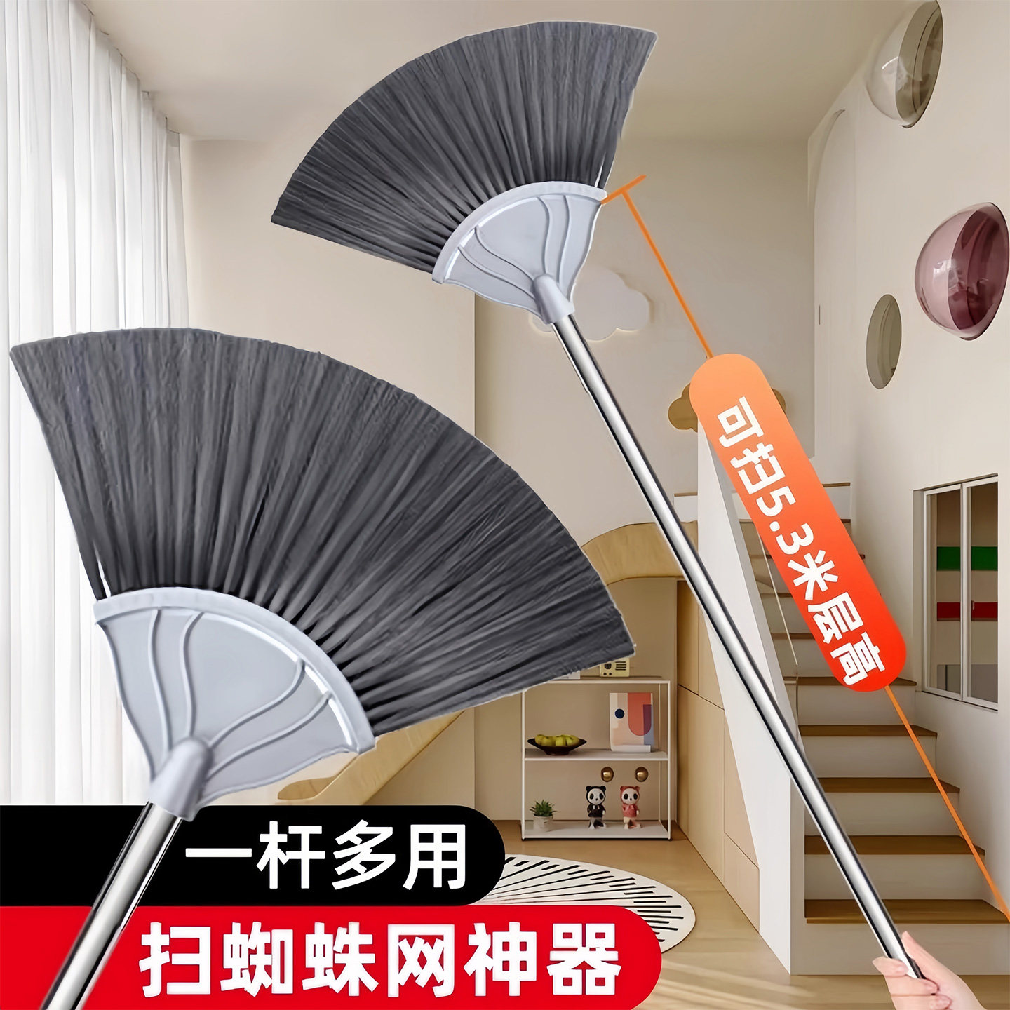 打扫蜘蛛网神器可调节天花板扫把灰尘蜘蛛网清除工具鸡毛掸子除尘