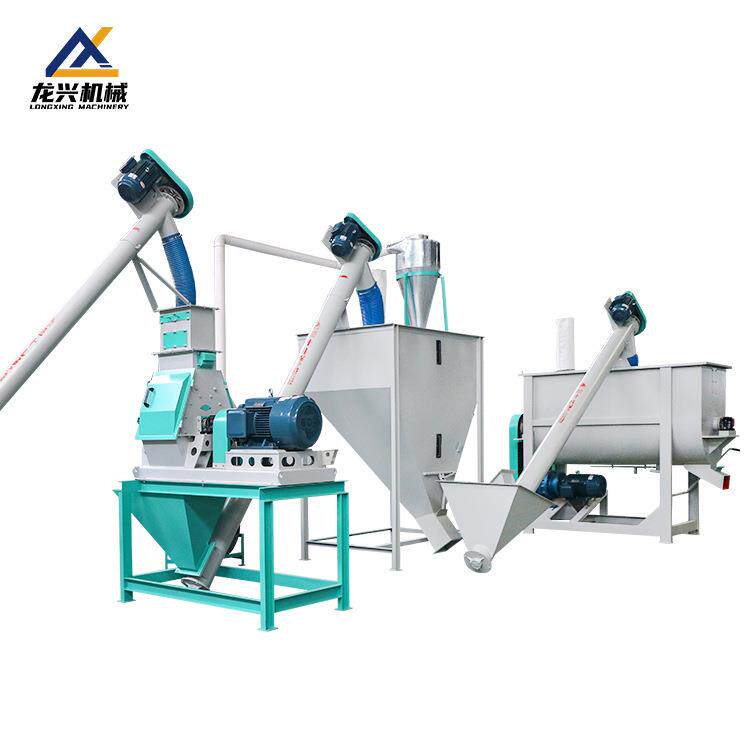 时产5吨饲料机组卧式混合机厂家供应鸡猪饲料线饲料机组龙兴机械