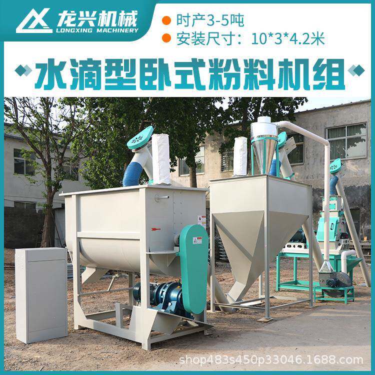 时产5吨饲料机组卧式混合机厂家供应鸡饲料线饲料机组龙兴机械