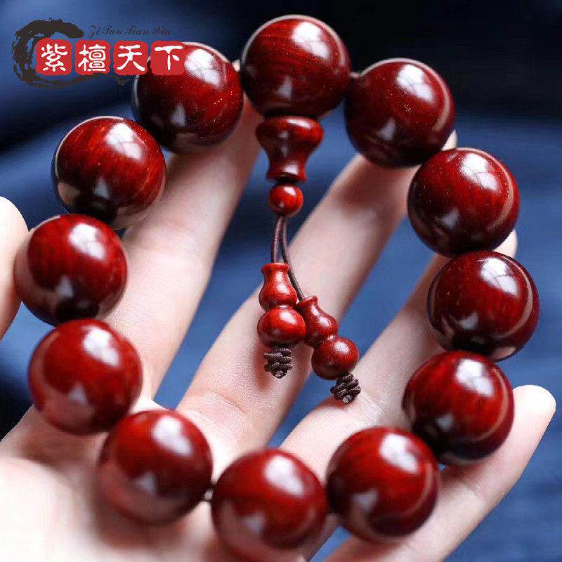 印度小叶紫檀手串2.0男金星文玩老料檀香木108颗鸡血红手链女佛珠