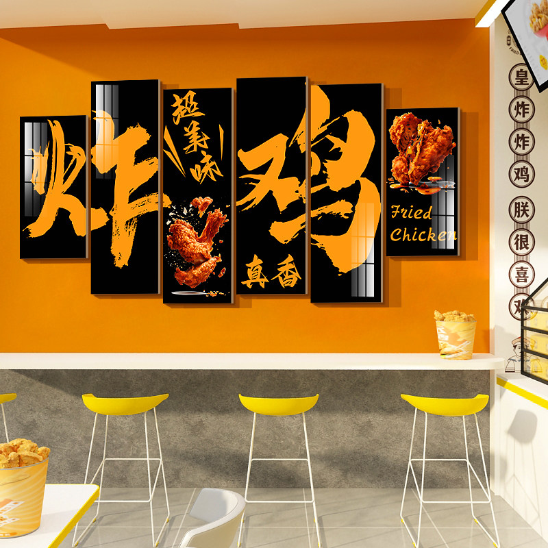 网红韩式炸鸡店墙面装饰画用品广告背景汉堡小吃馆创意玻璃贴纸画