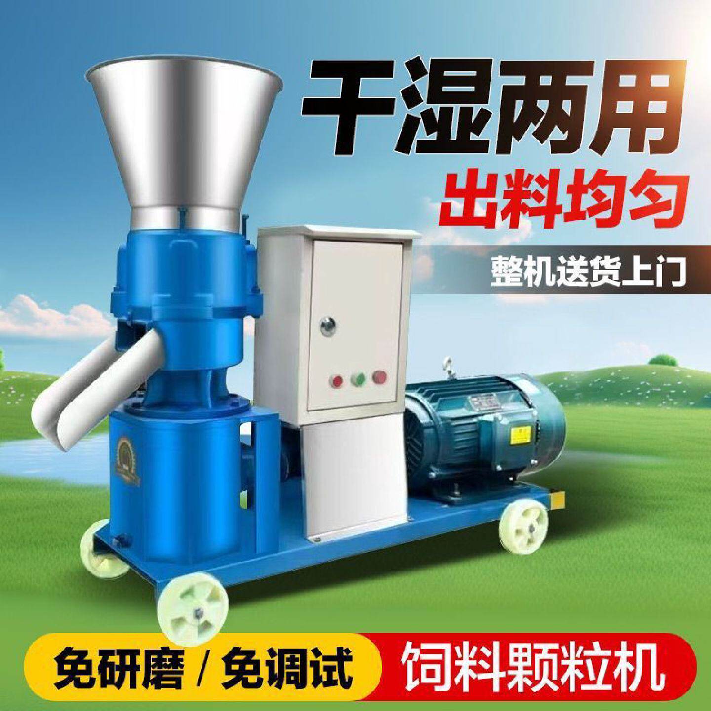 饲料颗粒机220v小型家用养殖鸡鸭自制造粒秸秆干湿两用大型颗粒机