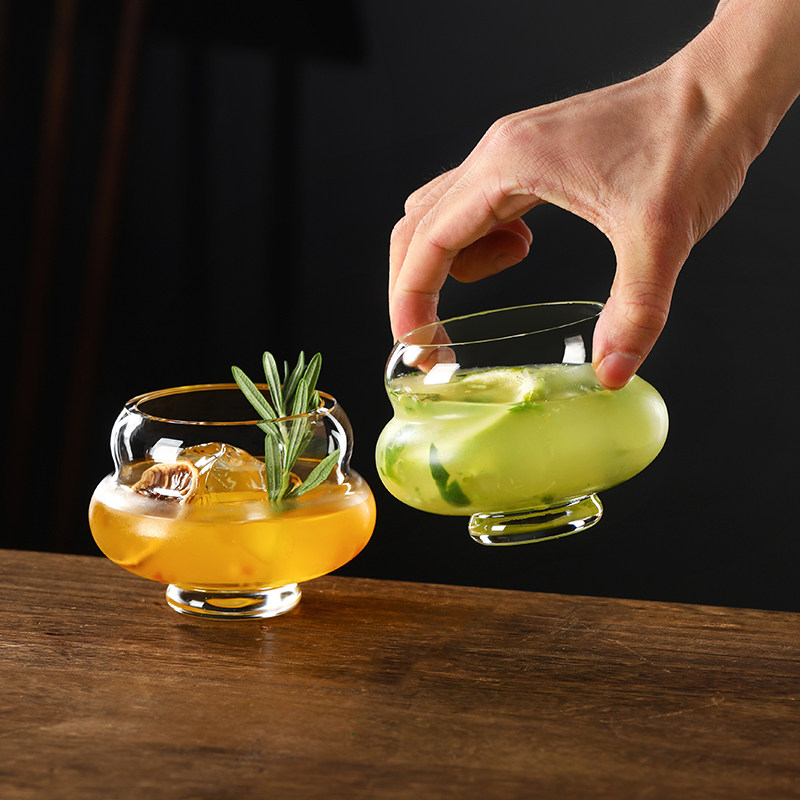 高颜值玻璃杯设计感小众大肚杯鸡尾酒杯果汁杯创意咖啡杯子饮品杯