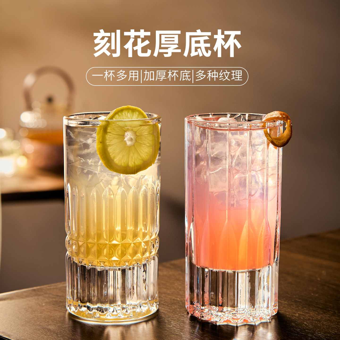 高硼硅冷饮杯子透明玻璃鸡尾酒杯阔口冷饮杯简约高颜值