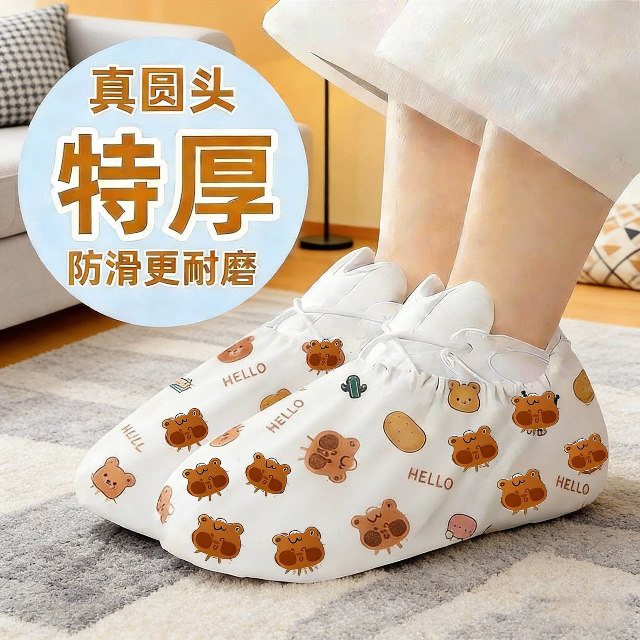 无纺布加厚印花鞋套可洗耐磨成人脚套鞋罩一次性鞋套室内家用待客