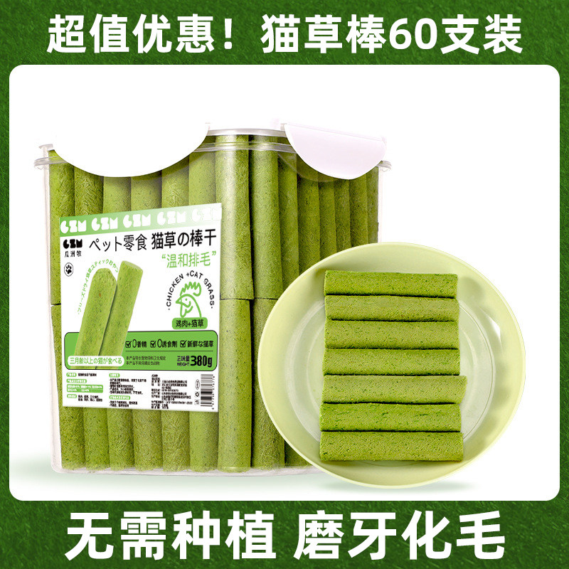 猫草羊奶棒猫咪零食毛球克星小幼猫冻干鸡肉磨牙猫化排草棒粒粉粮