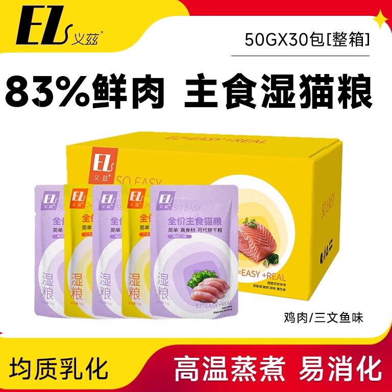 义兹猫粮宠物猫零食主食猫湿粮包鸡肉三文鱼味整箱30包试吃湿粮包