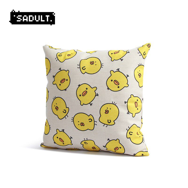 阿布很忙 可爱小黄鸡卡通棉麻长方形抱枕汽车腰枕沙发靠垫靠背套