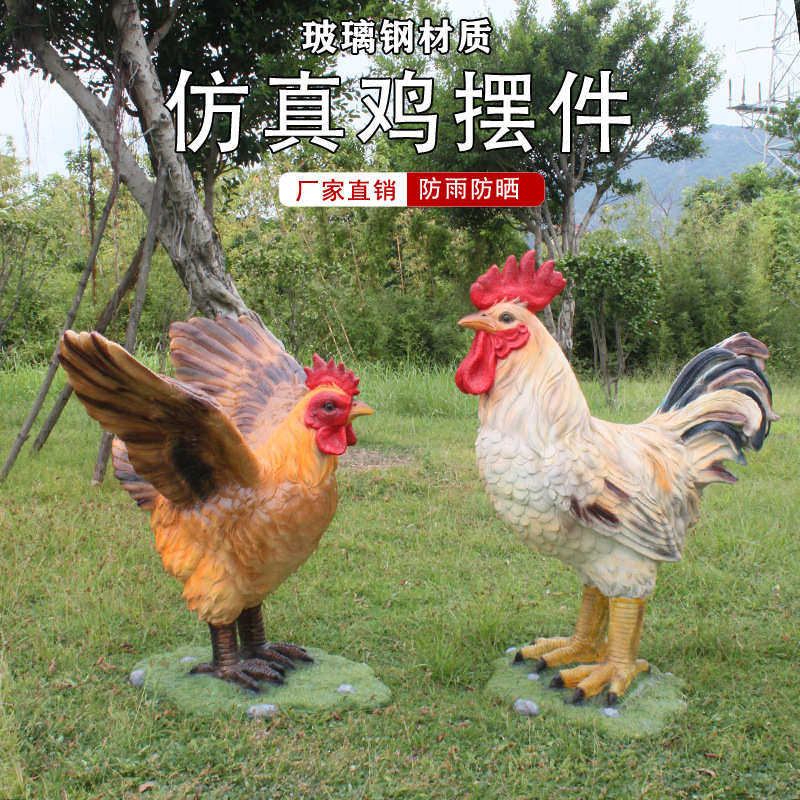 户外花园仿真公鸡母鸡摆件庭院客厅装饰品别墅大号玻璃钢动物雕塑