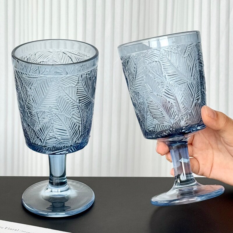 设计感浮雕高脚玻璃杯鸡尾酒杯果汁杯饮料杯家用酒杯