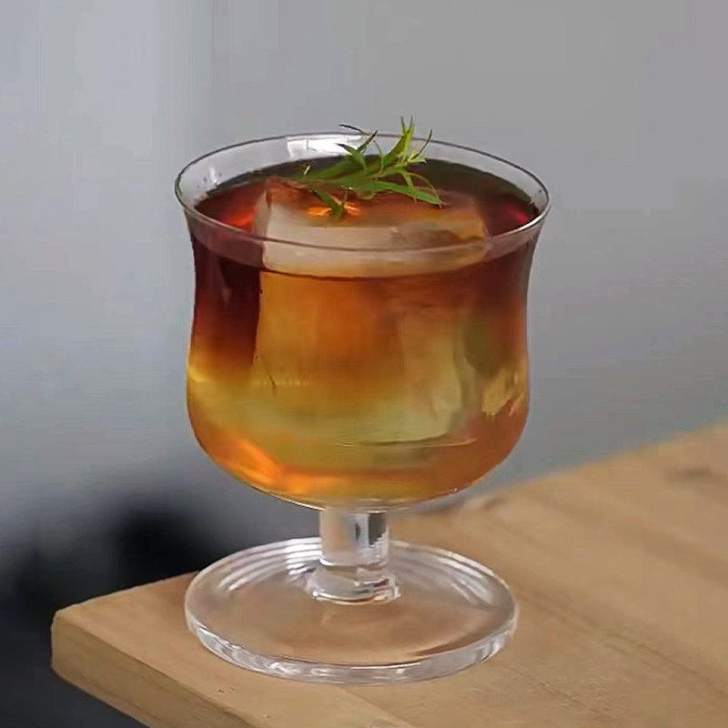 创意风菱形矮脚玻璃杯饮品杯高颜值鸡尾酒杯冷咖啡杯苏打气泡水杯