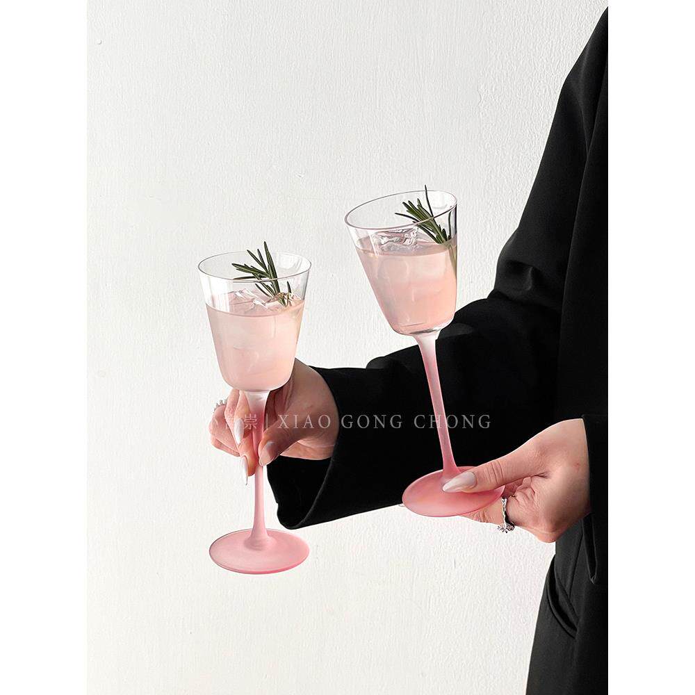 ins风磨砂粉高脚杯高看香槟杯甜葡萄酒杯红葡萄酒杯创意微醺鸡尾