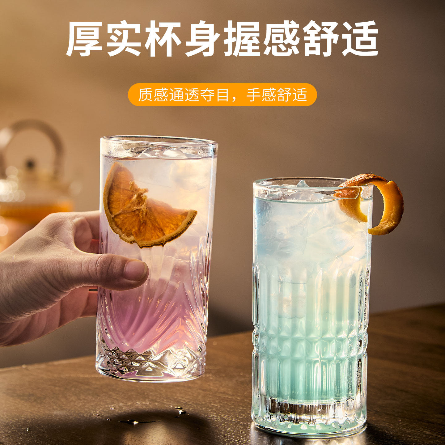 晶质柯林杯长岛冰茶杯玻璃直身调酒杯金汤力鸡尾酒莫吉托杯子