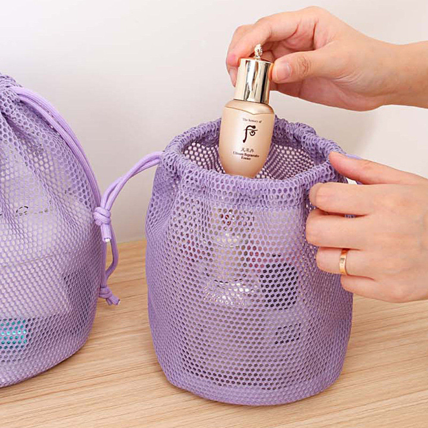 旅行洗漱包游泳洗澡包化妆包抽绳大容量网纱束口袋透明沥水收纳袋