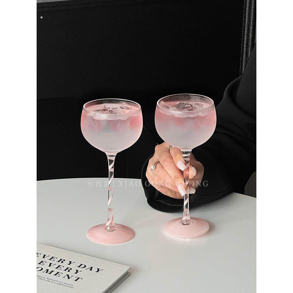高颜值粉色少女心鸡尾酒杯,创意高挑特别杯,个性化调酒杯,甜葡