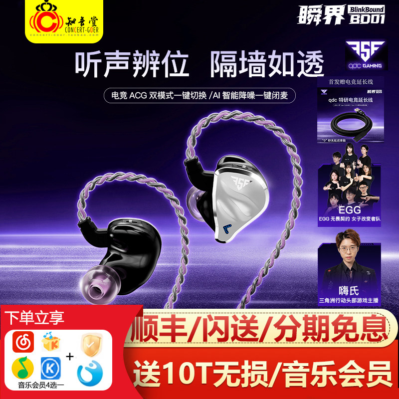 QDC FSF瞬界 有线游戏电竞耳机带麦typec手机电脑三角洲打瓦吃鸡