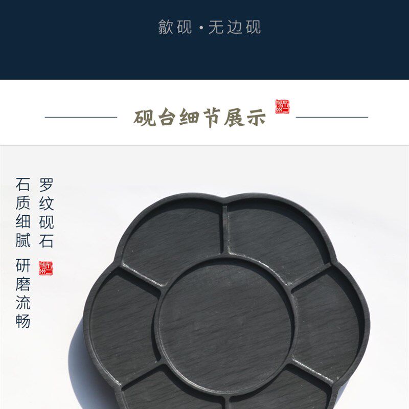 瓣七色画盘砚面用书画砚歙砚彩色颜料徽墨罗纹砚