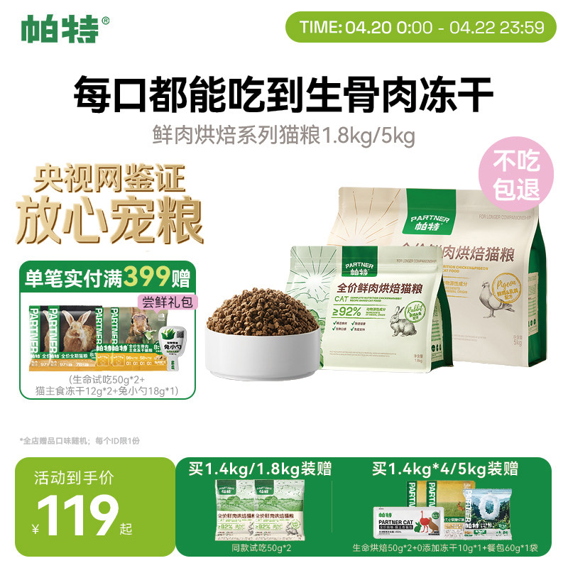 帕特烘焙猫粮鲜肉鸡肉兔肉乳鸽配方全价添加811主食冻干粉猫主粮
