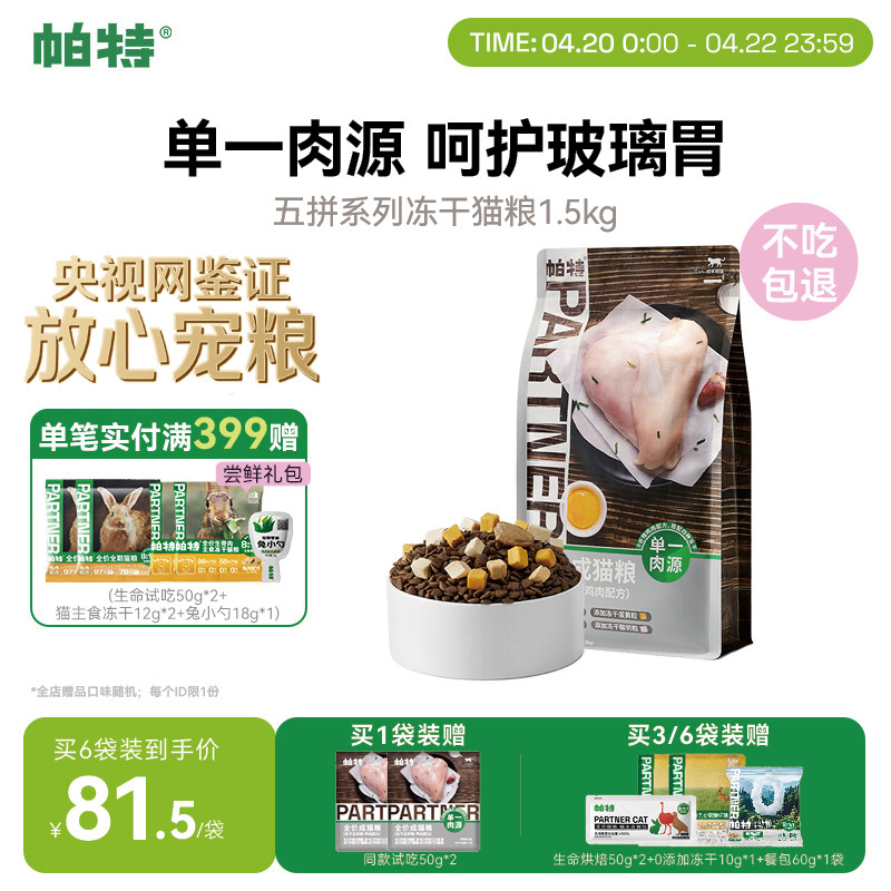 帕特旗舰店猫主粮冻干五拼鸡肉蛋黄酸奶鸡心幼猫成猫0诱无谷猫粮