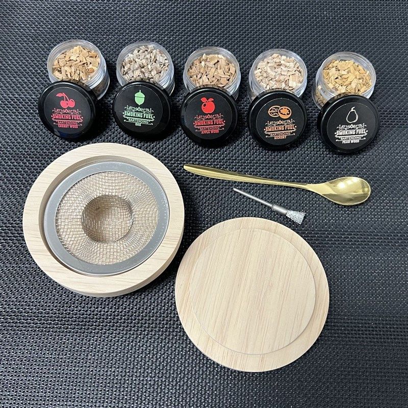 木制烟熏器酒吧创意调酒分子木屑烟熏威士忌烟熏鸡尾酒盖罩器套装