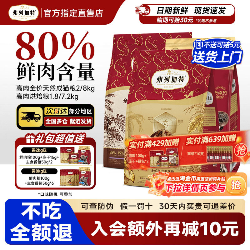 弗列加特猫粮乳鸽鸡鲜肉无谷烘焙粮营养全期80%鲜肉粮官方正品
