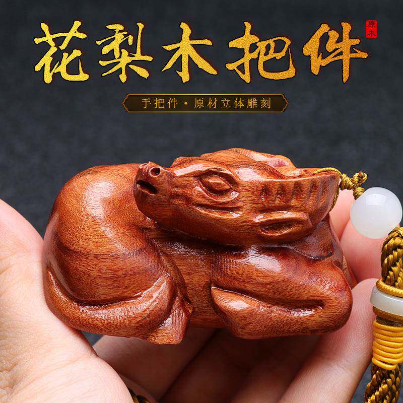 黄花梨木根雕十二生肖鼠牛虎兔蛇马羊猴鸡狗猪随身手把挂件文玩男