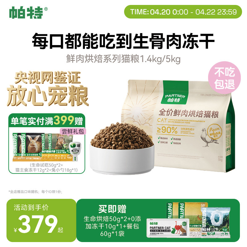 【囤货装】帕特烘焙猫粮鲜肉鸡肉兔肉乳鸽全价添加主食冻干猫主粮
