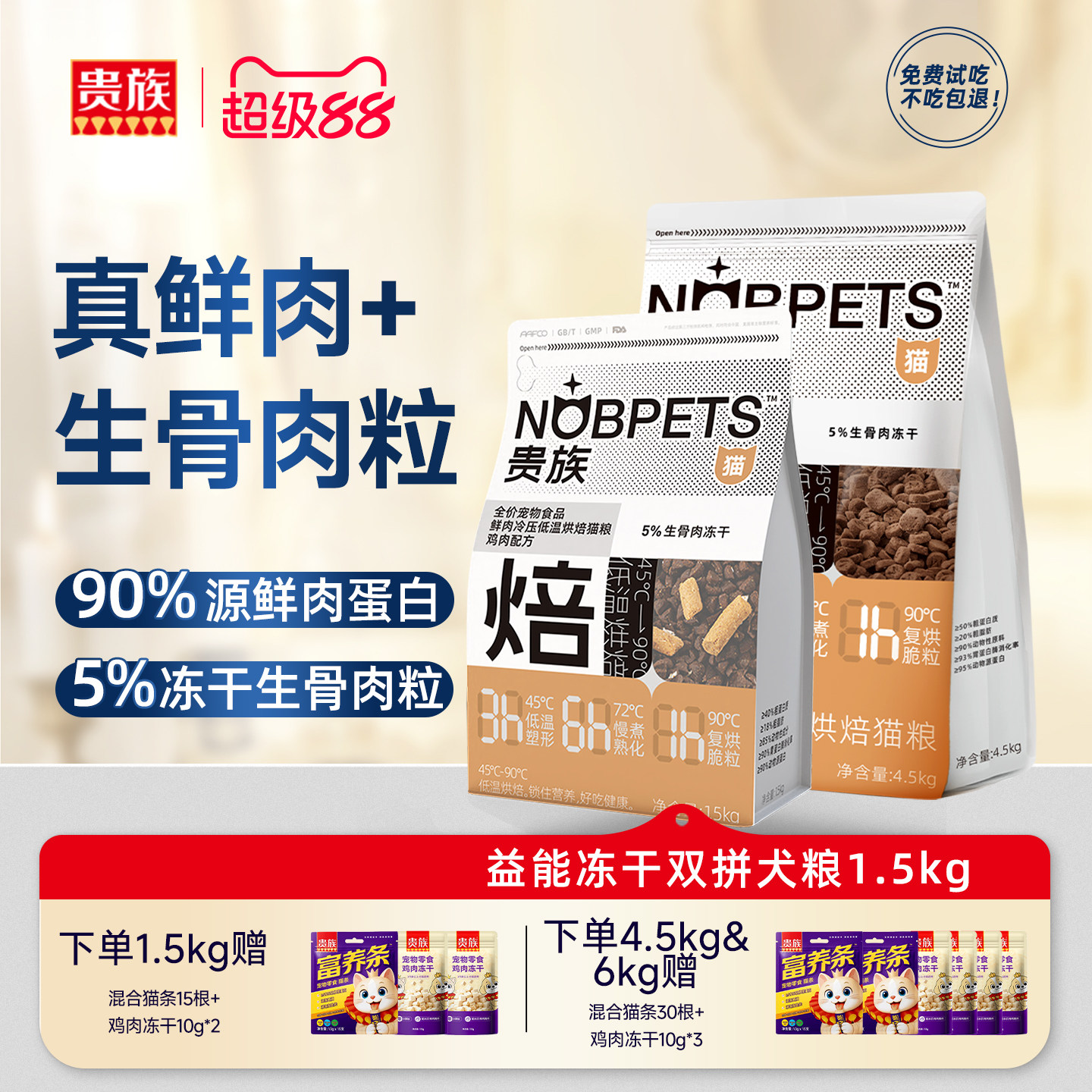 贵族鲜肉低温烘焙猫粮冻干全价无谷鸡肉高蛋白成猫幼猫主粮旗舰店