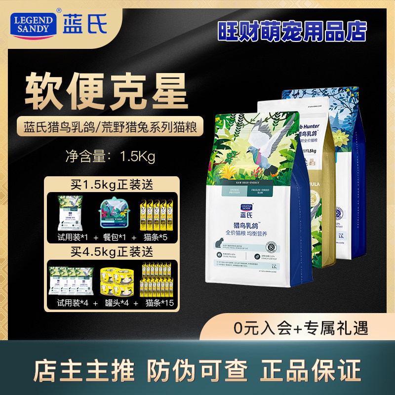 蓝氏乳鸽猫粮1.5kg猎鸟荒野猎兔火鸡冻干生骨肉成猫幼猫猫粮10kg
