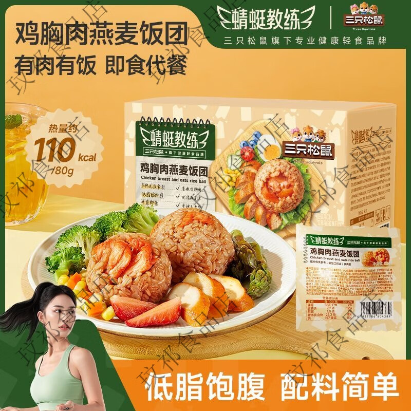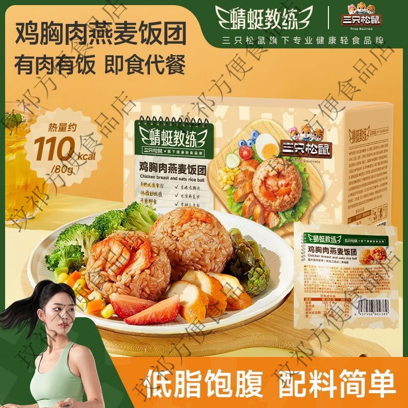三只松鼠鸡胸肉燕麦饭团1280g低脂饱腹营养早餐方便即食代餐 鸡胸肉燕麦饭团1280g*1箱约16