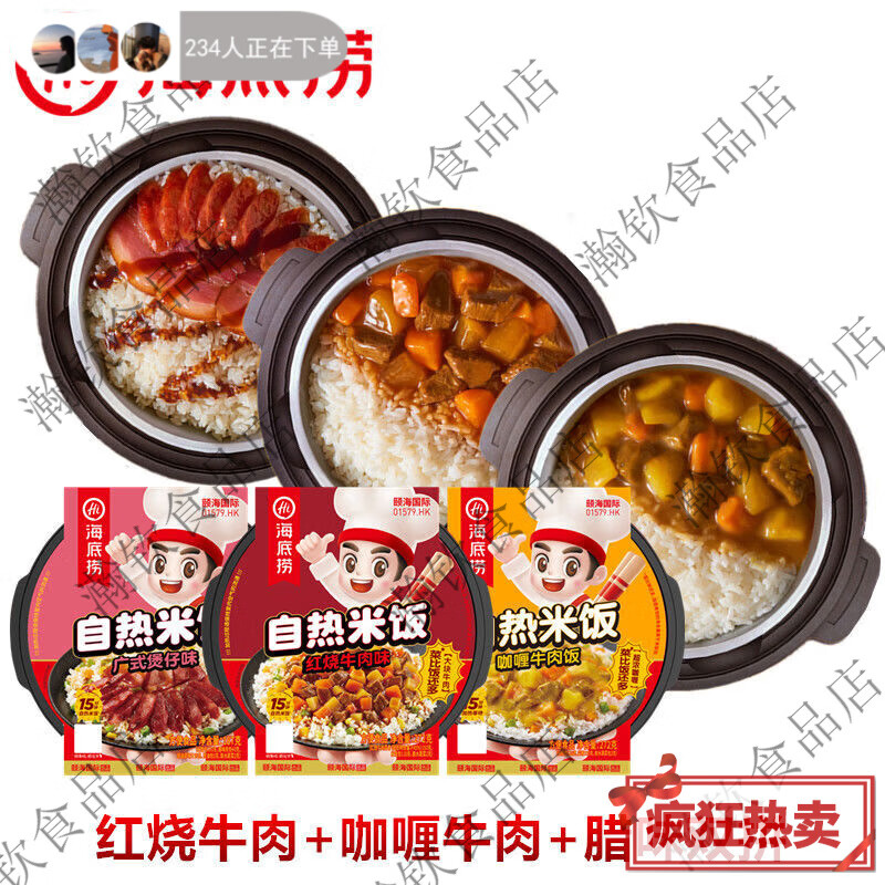 海底捞自热饭红烧牛肉咖喱焖鸡煲仔饭多口味方便自发热嗨饭正品保障 红烧牛肉1+咖喱牛肉1+广式煲仔1送零食5