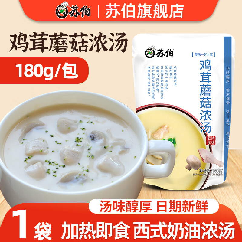苏伯 浓汤 法式奶油蘑菇汤芝士西餐速食汤速溶汤 【鸡茸蘑菇浓汤】180g*1袋