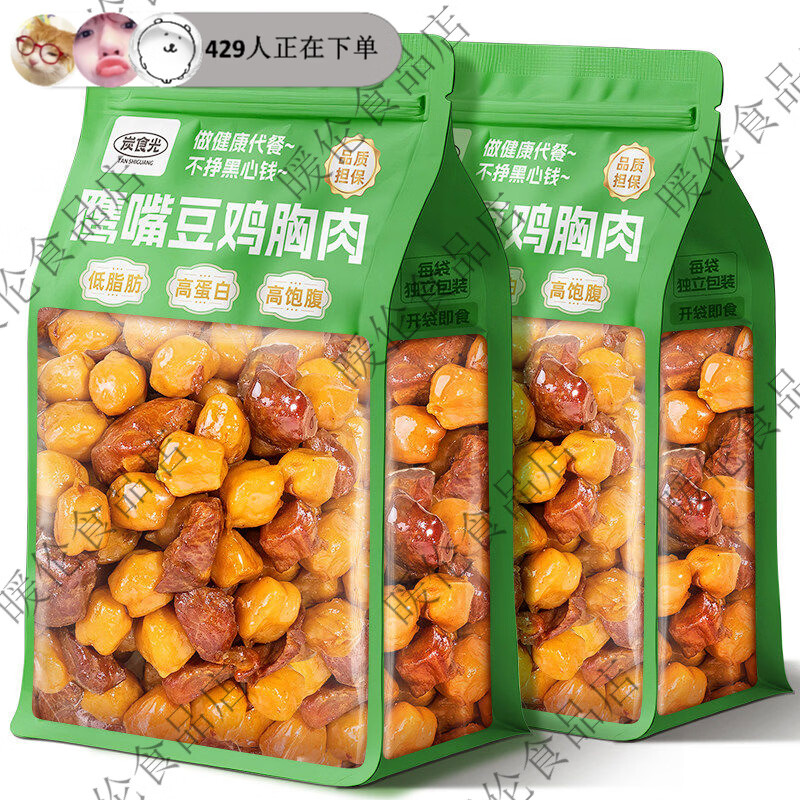 炭食光即食鹰嘴豆鸡胸肉坚果减0低脂肥粗粮健身代餐饱腹解馋主零食品 鹰嘴豆鸡胸肉20袋*25g减盐原味1斤
