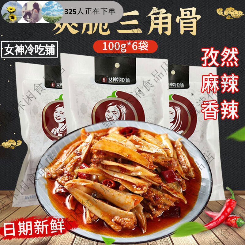 女神冷吃铺三角骨鸡脆骨带肉边夜宵解馋网红零食香麻辣三角骨即食正品保障 混装3袋麻辣1香辣1孜然1带肉